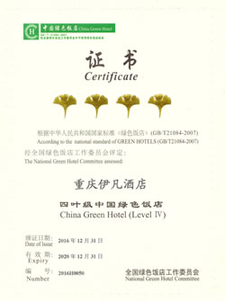 重慶伊凡酒店四葉級(jí)中國(guó)綠色飯店